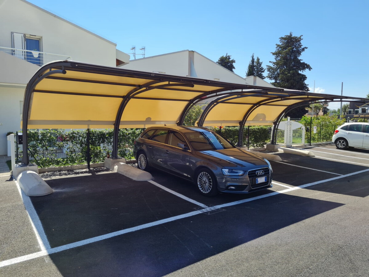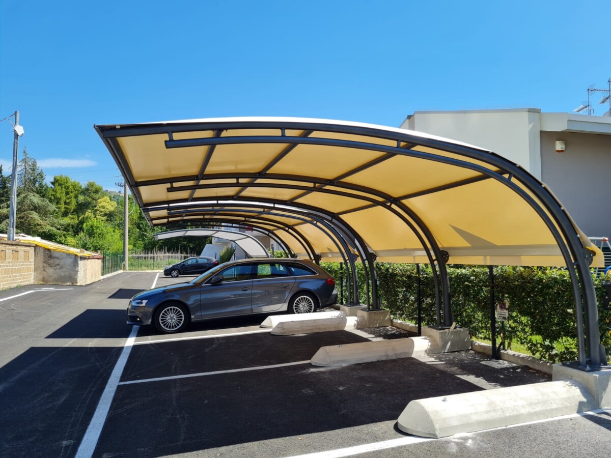 • Pensilina a sbalzo modello motivo Laser: design, resistenza e predisposizione fotovoltaica