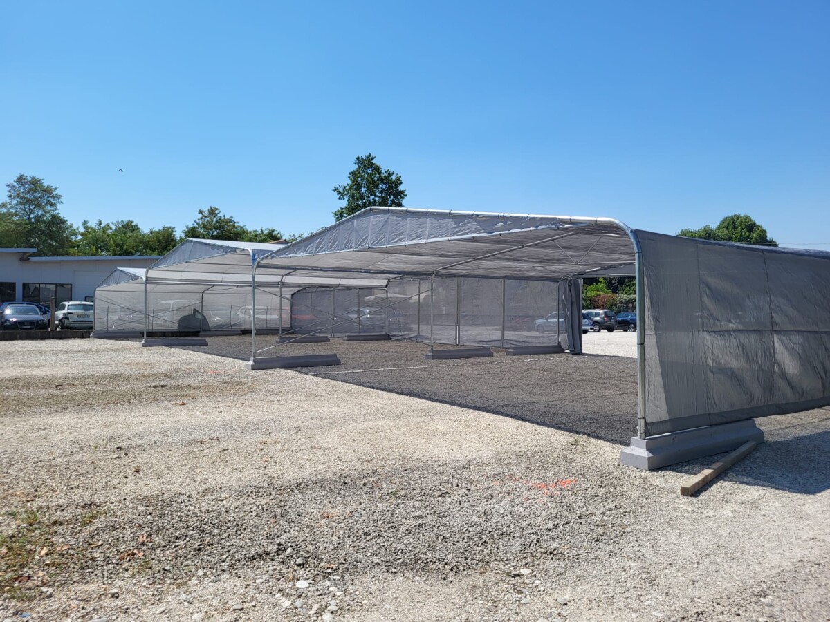 Struttura modello Ombreggiante antigrandine formata da 3 moduli consecutivi larghi ogni uno 10 metri e profondi 10.