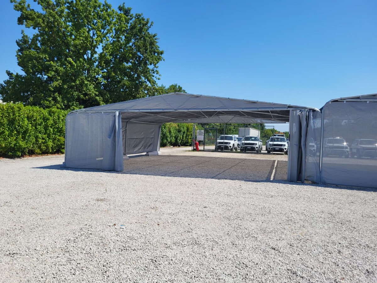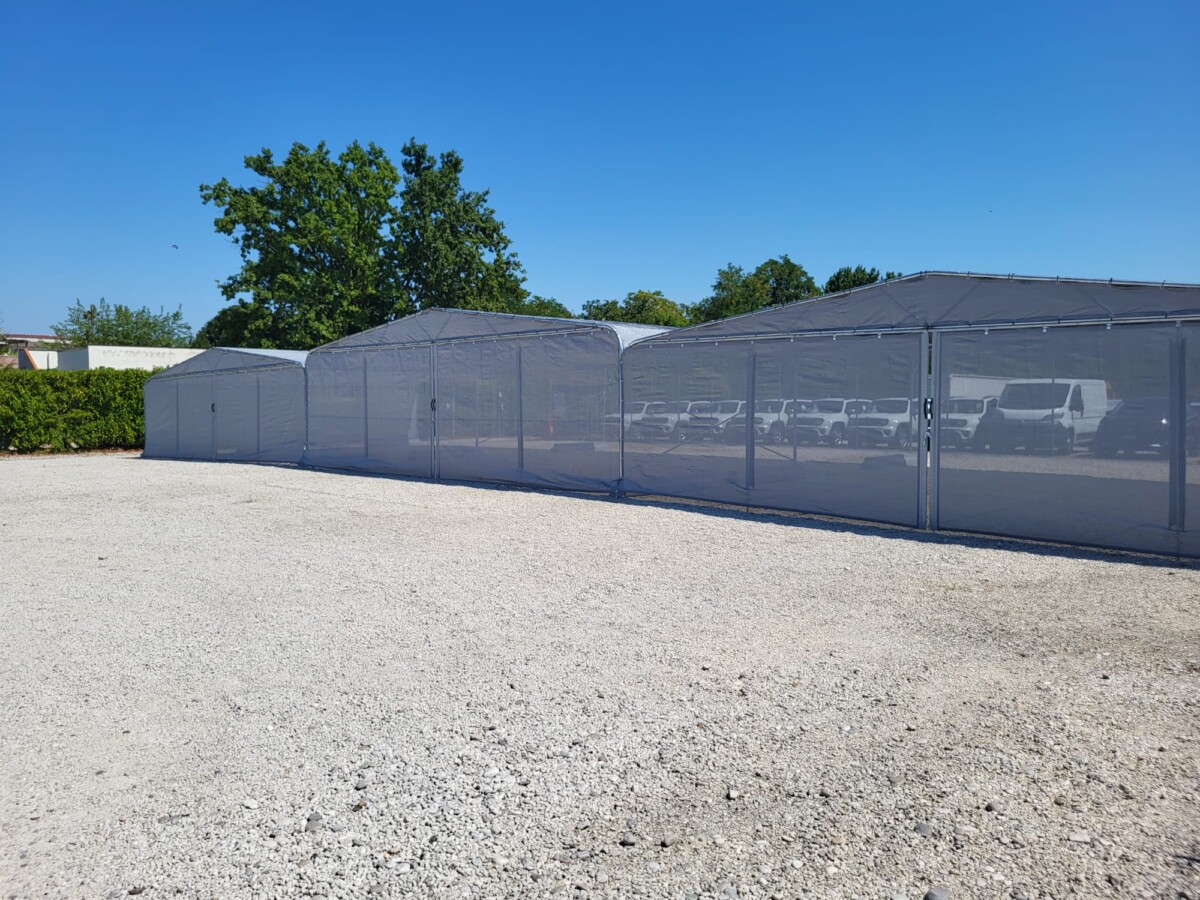 La struttura è stata realizzata secondo le esigenze del cliente, che ha voluto le chiusure scorrevoli più la copertura sui laterali.